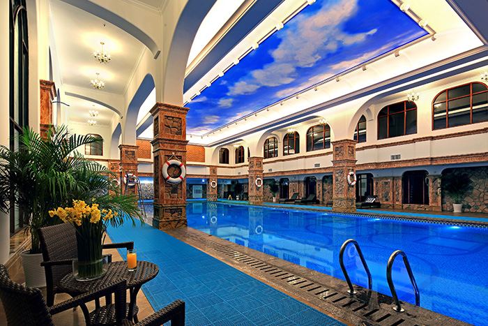 位于青岛印象·金沙滩高层公寓式酒店内,毗邻金沙滩,拥有恒温海水泳池、餐饮吧、休闲健身室等一流的硬件设施和管理服务,集中了休闲、康体、游艺、餐饮四大功能,完美融合了高尚生活与商务休闲。