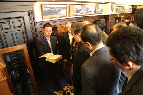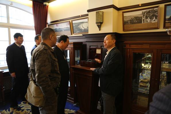 11月21日上午,建川博物馆樊建川先生一行,与青岛市委常委、宣传部长胡绍军等领导同志一起来到位于南海路23号的集团公司总部(海滨旅馆旧址)参观访问。虽然已经是国内博物馆和收藏界鼎鼎大名的人物,但樊建川先生依然被这栋建筑的底蕴所打动,从外观到内部,从轮廓到细节,认真地品味这栋百年建筑。还饶有兴致地与集团公司董事长孔少武先生探讨回旋楼梯如何实现了结构承载与工艺美感的完美结合。樊建川先生表示:这栋建筑历经百年能够保存下来实属不易,而今天在青岛城市建设集团的手中能够得到如此细致用心的保护修缮,则更加难能可贵。