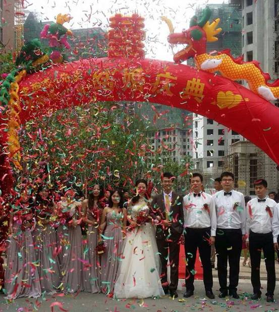 7月2日7点58分,伴随着热闹的鞭炮和祝福锣鼓,一队崭新夺目的喜车缓缓驶进青岛印象•山小区入口,物业客服管家及服务团队在两侧列队敬礼欢迎喜车,并有专人用拍立得为新郎新娘拍摄一次成像的照片赠送给新人,共同祝福青岛印象•山业主李先生和太太喜结连理。这也是青岛印象•山项目一期自6月30日交付以来的迎来的首场婚礼。