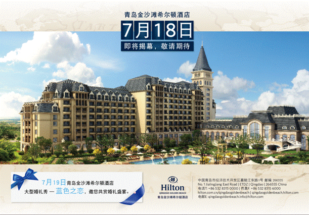 2014年7月19日,青岛金沙滩希尔顿酒店“蓝色之恋”婚庆盛典隆重揭幕。