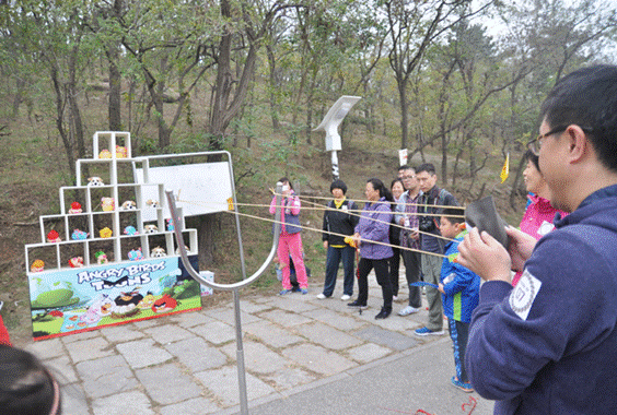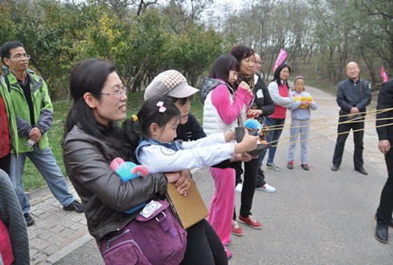 考虑到本次登山活动都是以家庭为单位报名参加,为照顾老人和儿童,本次活动并没有进行常规的“计时赛”,而是在比赛途中准备了四个游戏环节:欢乐的套圈比赛、时尚的愤怒小鸟、激烈的跳绳对抗赛、还有充满欢乐的“你来比赛我来猜”,让家庭中的每一个人都参与进来。