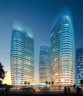 4,烟台市海阳港汇新海岸项目,位于烟台海阳市旅游度假区东部,总建筑面积近10万平方米,建筑地上28层,由3座钻石型的滨海公寓构成,造型别致,海洋气息浓厚,项目处于施工过程中。