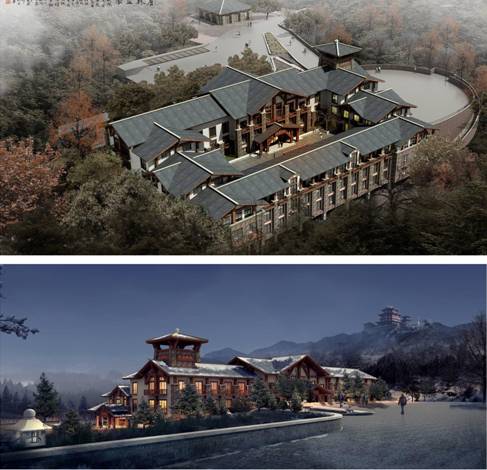 2,潍坊市沂山风景区鼎基避暑山庄项目,项目位于国家4A级景区沂山山顶,总建筑面积1万平方米,涵盖酒店,画廊,会议,展览等功能,项目地形复杂,设计难度大,设计研究院以精品化的设计获得业主及各级领导好评,此项目同时获得第七届威海国际设计大奖赛优秀奖。项目处于施工过程中。