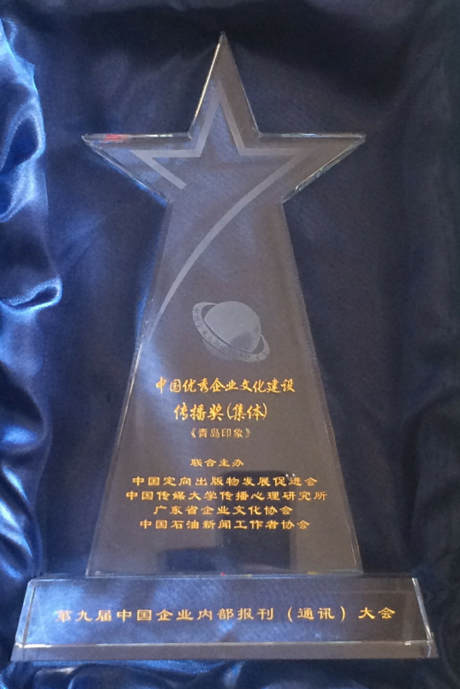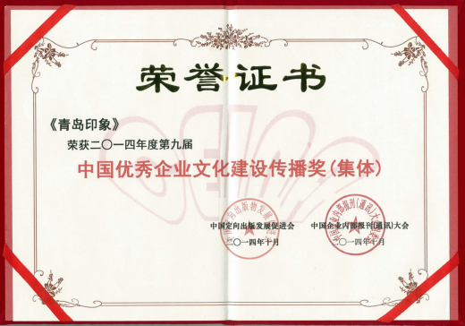 在今年第九届中国企业内部报刊(通讯)大会上,《青岛印象》以专业的文化素养、持续的公共影响力以及出色的装帧设计,荣获“中国优秀企业文化建设传播奖(集体)”。