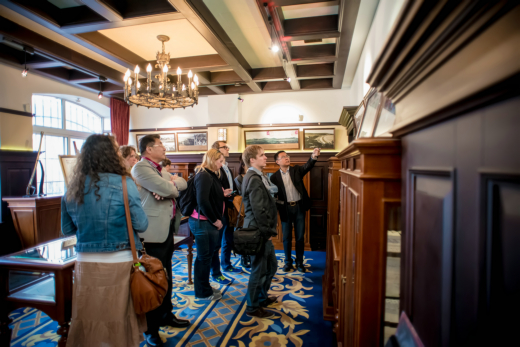 在交流会开场前,访问团首先参观了海滨旅馆旧址和青岛印象博物馆,对青岛城市建设集团在历史建筑保护和史料收藏方面的工作大加赞赏。会议首先由青岛城市建设集团向考察团一行介绍了沙滩旅馆的历史与今生,青岛城市建设集团以及青岛城市建设文化交流协会在促进青岛与德国文化交流方面所做的主要工作。