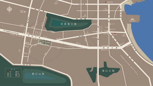 半岛印象项目位于威海市环翠区世昌大道93号,南邻仙姑顶风景区,北向尽揽环翠楼公园,距离威海市政府2.8公里,沿世昌大道向东2.5公里即可到达海滨幸福公园,交通便利、风景优美。