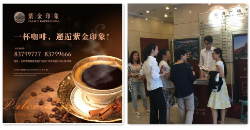 北京的夏日火热而不失风范,一场“一杯咖啡,邂逅紫金印象”的主题互动在精英云集的北京金融街举行。以世界各地名品咖啡为纽带,联结京城金领精英阶层与紫金印象的高端交集。现场活动中,汇聚了意式、美式、南美、非洲、亚洲等各地品鉴级咖啡精品,并配有国际认证咖啡师现场展示和讲解。浓浓的咖啡香气辉映着金融街精英品味和紫金印象的品质生活愿景,而紫金印象的现场展示,也以其京城核心二环内的绝版地段,加上产品自身独特的建筑艺术魅力,令人驻足赞叹。