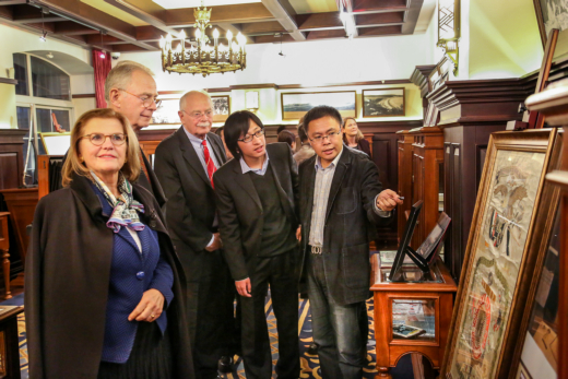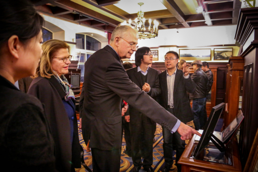 青岛市委常委、副市长王广正等领导陪同访问团参观了海滨旅馆旧址以及青岛印象博物馆,在参观青岛印象博物馆的过程中,两位后裔详细了解了其外祖父在青岛期间的活动,尤其对与孙中山先生相互拜会的一段历史非常感兴趣。他们认为孙中山先生是中国近代史上非常伟大的人物,1912年9月,正是在这栋建筑里,他们的外祖父拜会了孙中山先生,并就当时的国内国际问题做了深入探讨。在看到馆内藏有迈尔·瓦德克当年拜会孙中山后向德国方面进行汇报的书面资料,他们则久久端详,非常认真地阅读了其中的内容。而在青岛印象博物馆将其复制品赠与他们留作纪念之后,更是激动不已,连连致谢。