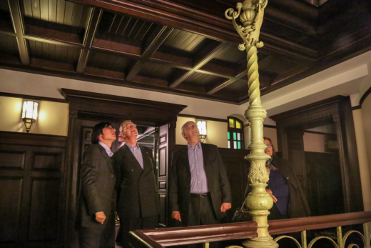 11月17日下午,南海路23号海滨旅馆旧址迎来了一群特殊的德国客人,他们其中的两位是最后一任德国总督迈尔·瓦德克的外孙。一行人甫一下车,立刻被这栋德国青年派风格的建筑所吸引,并对其在中国能够得到如此妥善的保护和利用给予了充分肯定。