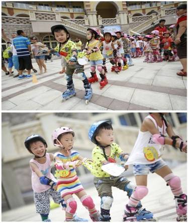 2013年8月3日,青岛印象•湾迎来了一批特殊的小客人,来自李沧区轮滑俱乐部的近百位小朋友和他们的父母一起参加了由青岛青岛印象•湾主办的开心轮滑比赛。