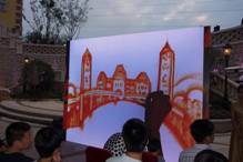 时光广场还原老青岛生活的沙画表演,