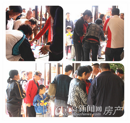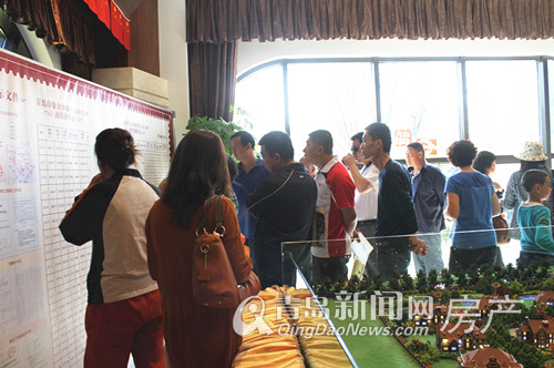 青岛印象金沙滩多层洋房开盘现场 置业者查看销控表
