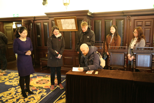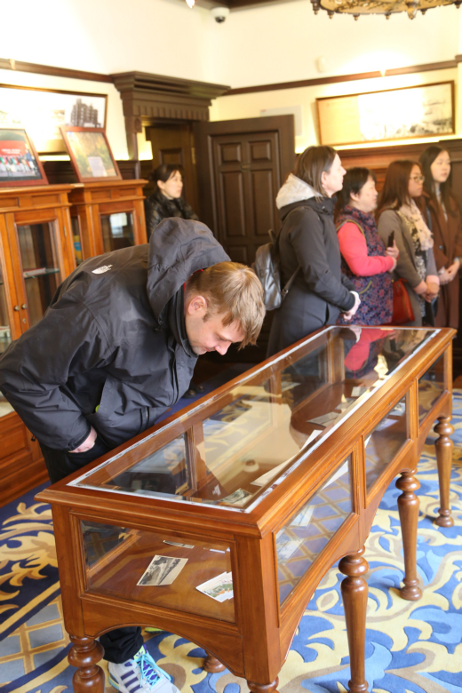 艺术家们参观考察了这栋始建于1903年的德式建筑和青岛印象博物馆,他们对博物馆中陈列的多件历史文物产生深厚兴趣,不时驻足观看,详细询问有关内容并不时与文化交流协会的成员认真交流沟通,对青岛城市建设文化交流协会和青岛城市建设集团这种尊重历史的态度表示钦佩、对为?;び判憷肺幕鞒龅母髦峙Ρ硎驹尢?。感慨之余,德国艺术家在留言簿上提笔写到:非常感谢受邀参加中德文化交流活动,你们的成功不仅在于保护了优秀的历史建筑,更重要的是对其利用和发挥作用。我们为你们感到十分自豪。为未来干杯!