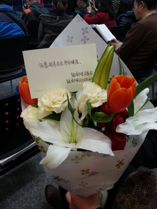下午两点三十分,见面会正式开始,虽已年逾八十但依然精神矍铄的鲁海先生携著名作家、爱子鲁勇先生共同出席了读者见面会,受到了现场读者热烈的掌声欢迎;青岛出版社副总刘涌先生也作为出版方代表出席本次见面会。