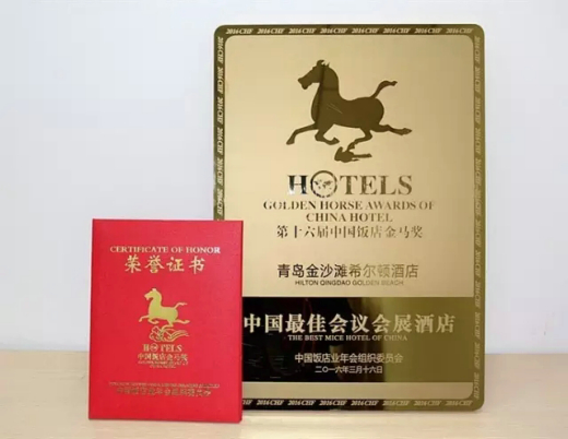 第十六届中国饭店金马奖盛典于近日在广州隆重举行。青岛金沙滩希尔顿酒店荣获“2015-2016年度中国最佳会议会展酒店”奖。