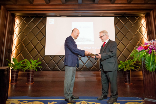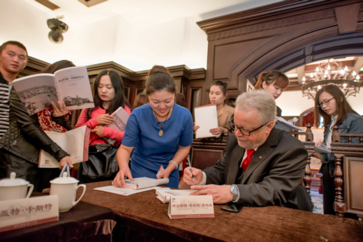 青岛市委常委、宣传部长惠新安,青岛市政协副主席、青岛城市建设文化交流协会名誉会长郄晋生,青岛城市建设文化交流协会会长孔少武和赫尔穆特•希姆斯•希姆森共同为新书揭幕。作为阿尔弗莱德•希姆森的嫡孙,赫尔穆特•希姆斯•希姆森专程从德国波恩赶到青岛,他在致辞中向青岛市政府和青岛城市建设文化交流协会为回忆录中文版的出版所付出的努力表示由衷的感谢,并向青岛城市建设文化交流协会赠送了他祖父所撰写的回忆录的手稿,手稿将作为珍贵的中德文化交流的见证收藏于青岛印象博物馆。