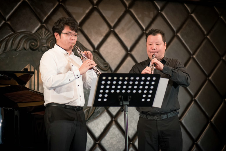 音乐会在一首圣·桑的《双簧管奏鸣曲》的悠扬声中启幕,将听众带入一个“风”与“水”的唯美意境;而接下来的《希巴女王驾临》则以明快的节奏,将双簧管和钢琴协奏的高超技法演绎的淋漓尽致。著名作曲家杜韵结合其普利策奖作品,向现场听众诠释了现代音乐技法以及歌剧的震撼魅力。陈雷激先生的一曲《流水》音韵缭绕,更是令所有听众屏息凝神;著名小提家何为的一首《诙谐曲》,让听众们领略了心随乐扬的愉悦;而由刘明嘉、何为、曹慧用三种乐器演奏的巴赫的《协奏曲第二乐章》更是展现了音乐家们非凡的功力与默契。整场音乐会在刘明嘉携夫人武玉婷以双簧管和古典吉他的联袂演奏的婉转中落幕。