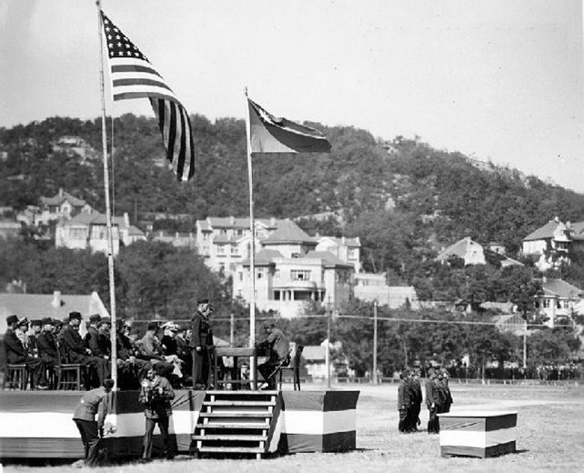汇泉湾畔的老建筑——海滨旅馆作为历史的见证者伴随着72年来的海风轻轻向大家讲述着七十多年前的那段历史。1945年10月25日,青岛地区受降仪式在汇泉湾畔的汇泉跑马场上隆重举行。跑马场上的部队严整以待,美国海军陆战队第六师司令谢勃尔与中国国民党中将陈宝仓共同主持了受降仪式。当日本代表长野荣二上缴战刀、呈递降书之后,青岛终于从长年累月的压迫中抬起了头颅。但两次被日本侵占的痛苦记忆依旧萦绕在脑海中久久徘徊,因为历史不容忘记。