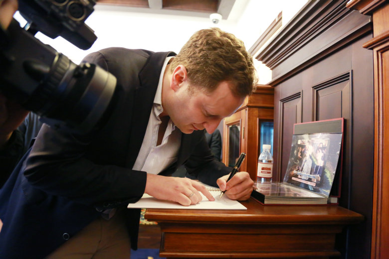 在参观了中外交流展厅后,王子看到我们在中德民间交流方面所做的工作,更是难抑自己激动的心情,表示要把家族古堡的相关资料和部分家族照片捐赠给博物馆,以留纪念和对外展示。王子在留言册上题词:非常感谢得到你们的邀请,来到这样一个对中德关系有特殊意义的建筑里真的非常高兴,在这里看到这么多关于历史与文化的影像和照片也让我激动万分。”