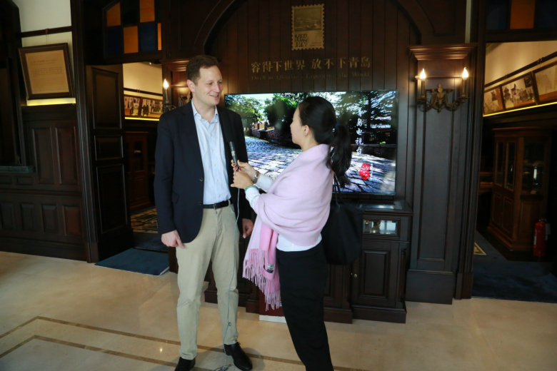 10月14日上午,德国普鲁士亲王访问团在省文物局副局长周晓波、市文物局副局长陈玘的陪同下来到了位于南海路23号的沙滩旅馆旧址参观大楼与青岛印象博物馆。此次访问团包括普鲁士王位继承人、霍亨索伦皇室家族首领奥尔格•弗里德里希•斐迪南,德国联邦议院的成员前朗韦德尔市长马特费尔德等一行16人。