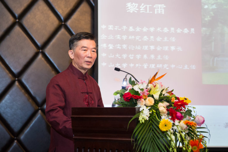 中国孔子基金会学术委员会委员、企业儒学研究委员会主任,博鳌儒商论坛理事会理事长,中山大学哲学系原主任黎红雷教授做了题为《企业儒学:当代儒学的新生长点》的演讲。