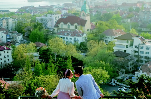 在八大关经营婚纱摄影的熊英说,不仅尘封的老建筑焕发生机,新人们的婚纱穿着也更丰富:法式婚纱、裤装婚纱、波希米亚长裙等具有国际元素的婚纱,越发受顾客青睐。