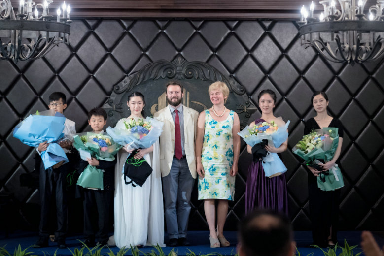来青考察的英国耶胡迪·梅纽因学校校长Kate Clanchy女士和艺术校长Oscar Colomina 先生,以及青岛市委宣传部副部长、市文广新局局长李明先生也一同出席了本场音乐会,并高度认可集团公司在文化教育尤其在支持青少年艺术教育方面所做的努力和贡献。