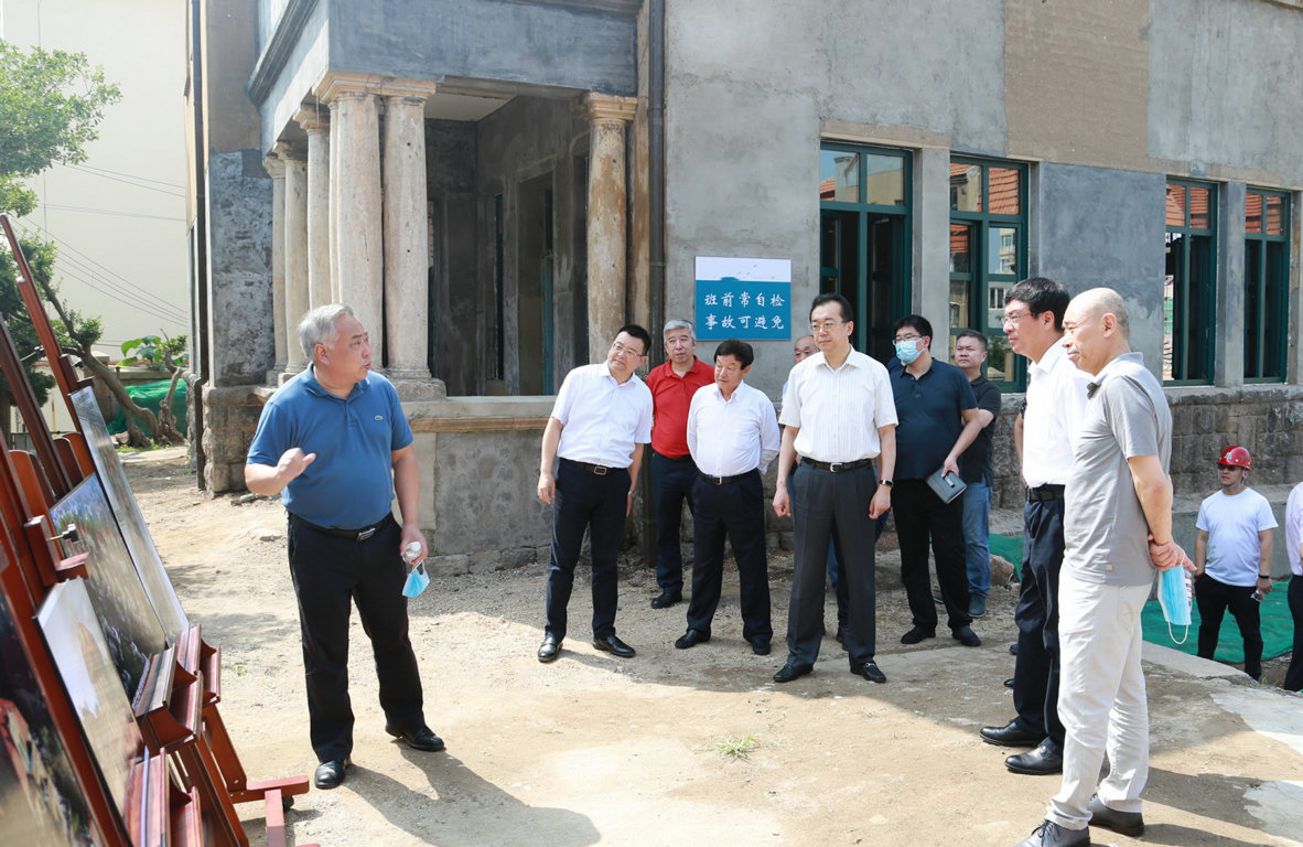 6月27日下午,正值端午节假期,市委副书记王鲁明、市北区区委书记张新竹等领导一行来到正在施工中的上海路-武定路历史文化街区修复项目现场,听取了集团公司关于该项目的修复工作汇报。对集团公司在历史建筑修复方面的工作,特别是对整个街区历史文化方面的深度发掘,给予了充分肯定,期待着集团公司能够通过本次修复使这一具有浓厚历史价值的街区重新焕发活力与光彩。