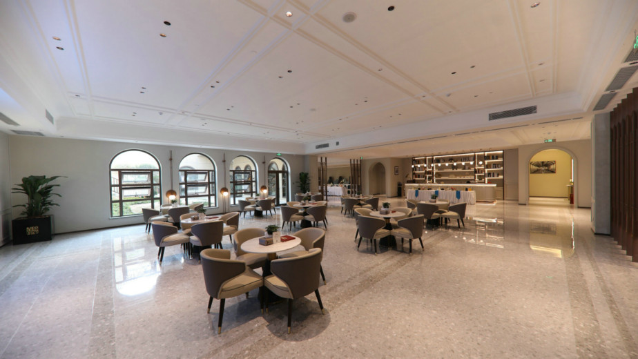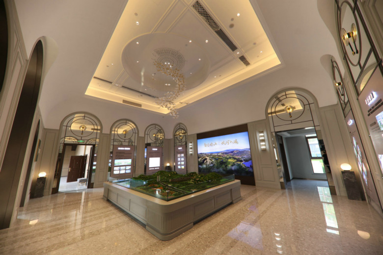 沿楼梯而下,便来到了营销中心的核心区域,沙盘区、谈客区、VIP室和儿童活动区均设在这里。这里有大面积的挑空,室外新鲜的空气可以穿窗而入。中间设面积约100平米的露天庭院,绿植错落,俊石伏地,精致的中式庭院布局;两侧设落地窗,阳光可以直接留在这里徜徉,让采光和通风自然而然。占地面积约100平米的儿童活动区是这里的亮点,一字型的落地书吧陈列着来自中国少儿出版社等优秀出版社的优质图书,内设游乐场,与室外游乐区形成内外呼应,让孩子们的快乐变得“川”流不息。