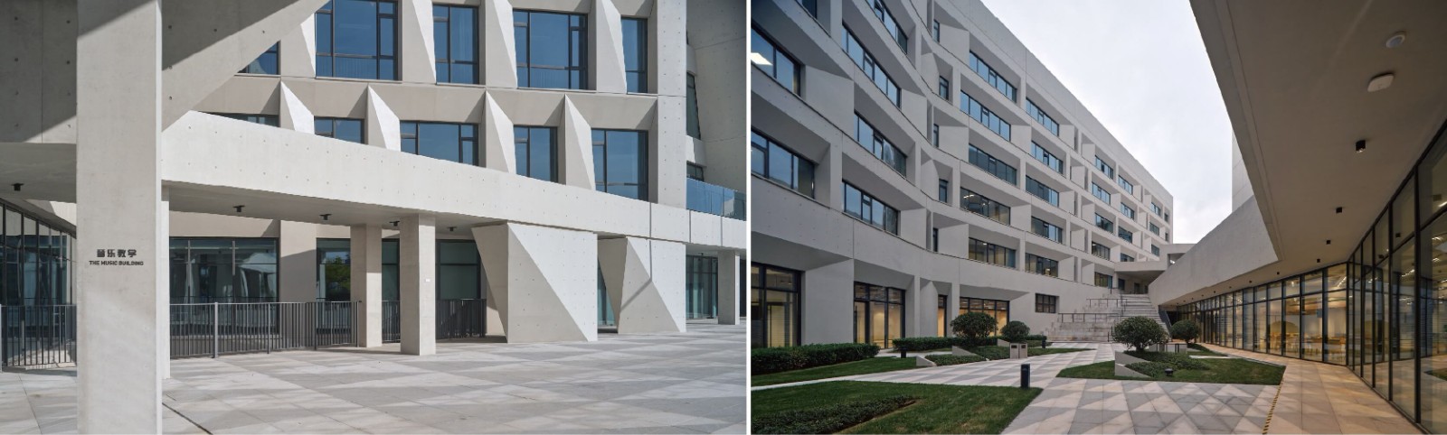 “一切为了孩子,一切为了孩子而建,一切为了孩子表达艺术”,这是青岛耶胡迪梅纽因学校及音乐艺术中心项目建筑设计的根本理念。建筑设计由国内著名的同济大学建筑设计院担纲,以“浪拍礁石,音韵律动”为设计灵感。通过精妙的空间布局与建筑形态设计,将传统与现代元素融为一体,不仅实现了与城市天际线的视觉和谐,更以细节彰显特色,建筑、景观、室内设计一气呵成,塑造了兼具个性与整体协调性的公共建筑空间形象,特别是在建筑中运用了光的灵动,打破常规,挑战全新的建筑几何美学,将清水混凝土建筑做到了极致。整体建筑契合自然与灵感相结合的思想,在繁华市区里闹中取静,既将优美海景收于眼底,同时还兼顾自然互动,校园周边绿荫繁茂,让学生在学习之余,多享一份宁静与惬意,也更能够激发艺术灵感,帮助学生融入音乐艺术创作与表达的理想境界。
